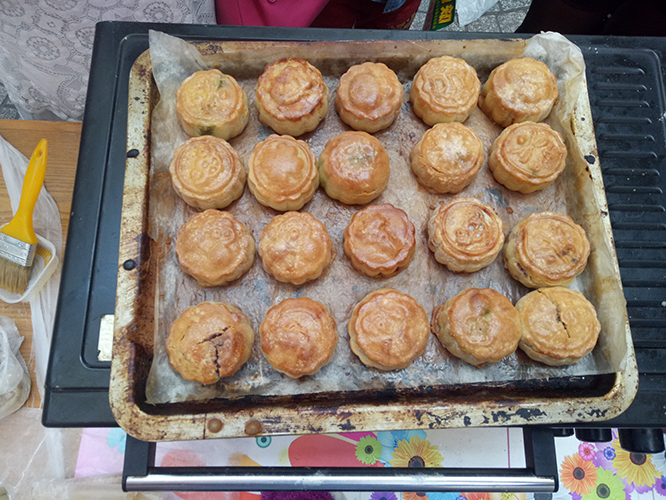 顧客在巧手師傅的指導(dǎo)下進(jìn)行揉面、搟制水油皮、包餡料的月餅制作過程。大家邊拉家常邊親手制作,氣氛和樂融融。讓顧客在金海商業(yè)廣場感受到故鄉(xiāng)的溫情與團(tuán)圓。制作好的月餅經(jīng)過烤箱烤制后大家一起品嘗,歡聲笑語不絕于耳。
