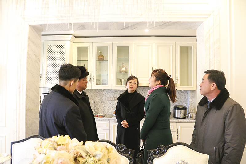 12月27日下午,朝鮮新義州市市長和代表團(tuán)一行蒞臨金海?濱江3號,丹東市副市長潘爽及金海集團(tuán)常務(wù)副總經(jīng)理莫丹熱情接待了他們,并陪同參觀了金?!I江3號樣板間、園區(qū)、金海大廈電影院、社區(qū)食堂以及金海熙康體檢中心。