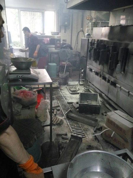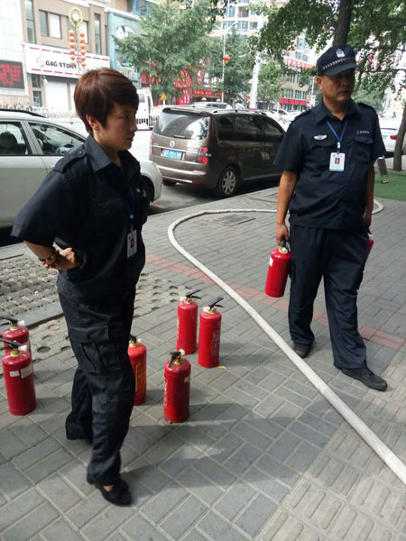 7月29日15時左右,金海物業(yè)江畔花園管理部當值保安班長趙丹巡視至57樓時,突然發(fā)現(xiàn)樓下飄過陣陣濃煙。當確定這股濃煙是來自57號樓外臨街門市一烤魚店,里面發(fā)生火情后,趙丹立即用對講機通知了管理部及49號崗、60號崗的值班保安。隨后,趙丹火速帶領(lǐng)保安楚兆強、張代秋,管理員孫海燕和熱心業(yè)主曲師傅,拎著滅火器趕到烤魚店。