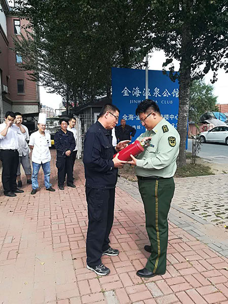 為提高員工整體消防技能及掌握有關(guān)消防處置方法,正確處理火災(zāi)發(fā)生的程序,9月27日,金海溫泉公館邀請振安區(qū)消防大隊(duì)張指導(dǎo)員給溫泉公館,溫泉小鎮(zhèn)物業(yè),溫泉小鎮(zhèn)售樓處三個(gè)部門進(jìn)行安全消防技能培訓(xùn)。張指導(dǎo)員認(rèn)真講解了消防栓、滅火器的使用方法,以及安全消防的基礎(chǔ)知識。每一位員工都了解及學(xué)會如何正確使用滅火器,以及發(fā)生火災(zāi)時(shí)如何采取應(yīng)急措施,為“十一”期間公館消防安全做好準(zhǔn)備工作。
