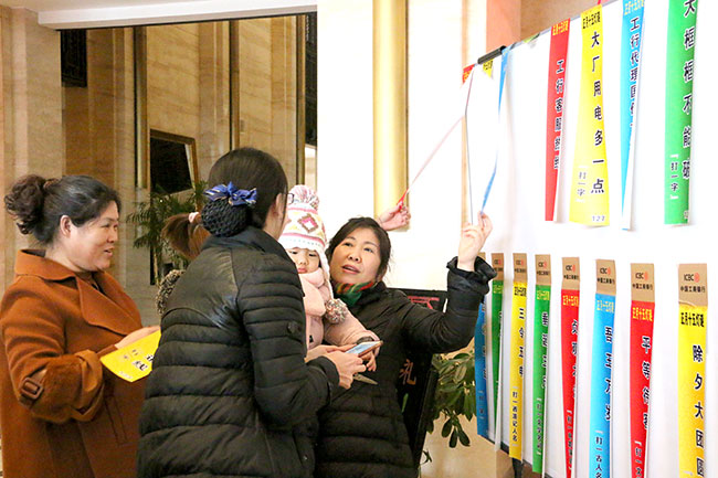 猜燈謎現(xiàn)場(chǎng)人頭攢動(dòng),50余條謎語(yǔ)等待人們來(lái)“解密”,內(nèi)容涉及字謎、成語(yǔ)、地理、日常生活等方面,猜對(duì)有獎(jiǎng)。業(yè)主們紛紛聚集燈謎下面,冷靜沉思,踴躍猜謎。不少業(yè)主爭(zhēng)先恐后地揭謎底搶答,猜中謎底的,則可獲得主辦單位精心準(zhǔn)備的獎(jiǎng)品?;顒?dòng)現(xiàn)場(chǎng)熱鬧喜慶,歡樂(lè)祥和。