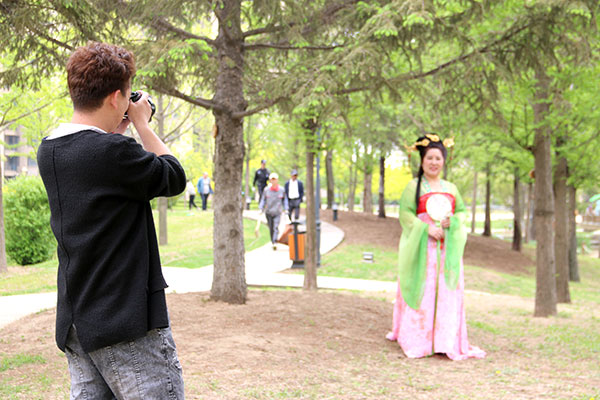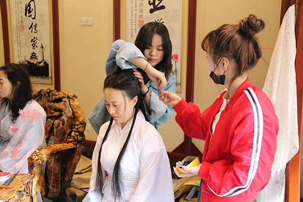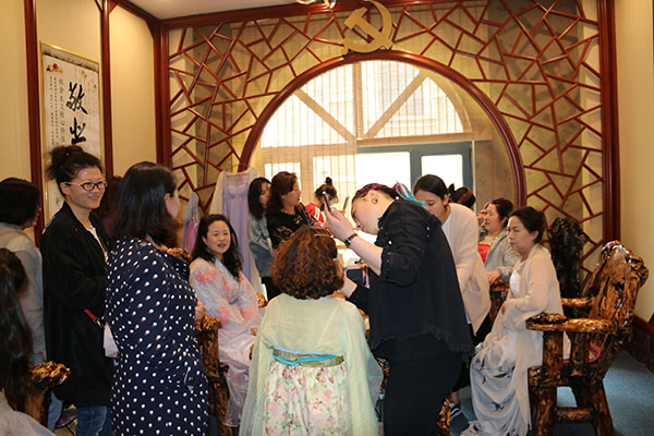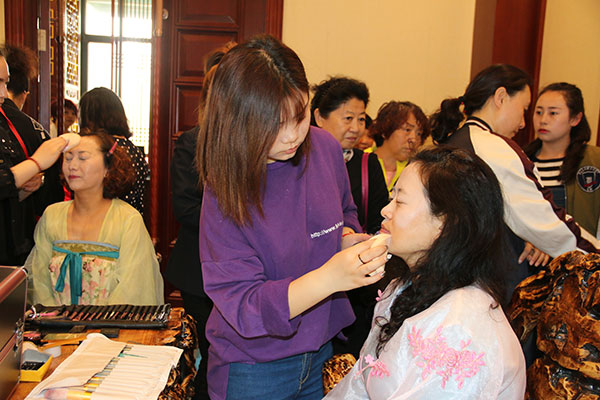拍攝之前,化妝師用嫻熟的技藝將媽媽打扮得楚楚動(dòng)人。“變身”之后,略施粉黛媽媽們仿佛變回當(dāng)年的模樣,宛如歲月從未走過。每一位母親們都滿臉盈笑并美麗異常,穿梭在濱江3號(hào)園區(qū),在疊翠溪旁,在紅花雕塑前,或是樹前留下美麗的靚影,展示著自己的魅力。