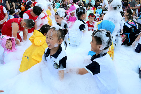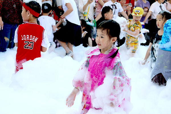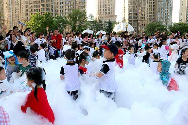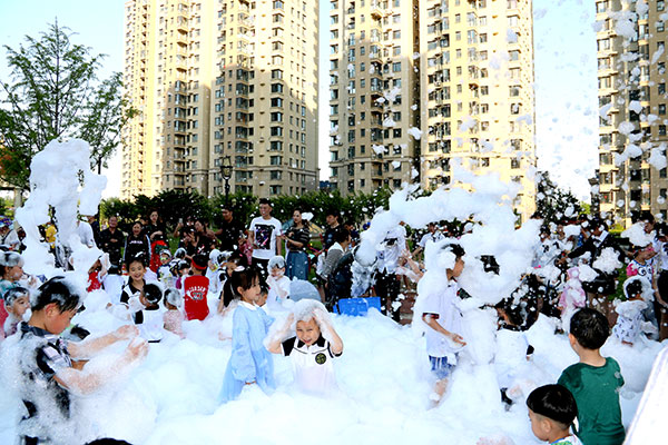 終于到了孩子們最期待的泡泡盛宴環(huán)節(jié),寶寶們爭(zhēng)先恐后、不顧一切地沖入泡泡的世界,果真泡泡的魅力無(wú)限大呢!在漫天雪花似的泡泡盛宴中,孩子奔跑、大笑、尖叫!體驗(yàn)著從未有過(guò)的快樂(lè)時(shí)光!超大功率的泡泡機(jī)將噴射出泡泡,瞬間充滿整個(gè)廣場(chǎng),從天而降的泡泡也讓您感受最涼爽的夏天!