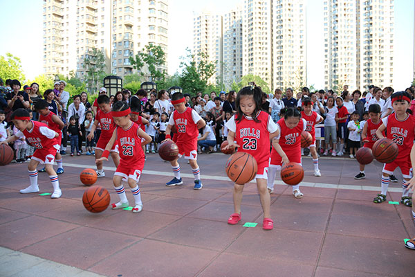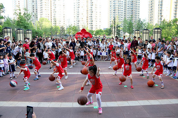 活動(dòng)以恩舟教育寶寶們的籃球秀拉開(kāi)了帷幕,在音樂(lè)的伴奏下,只見(jiàn)籃球在這些小朋友手里揮來(lái)?yè)]去,萌娃們跟隨著旋律變換隊(duì)形,用右手拍球、左手拍球等方法展示自己的基本功,讓前來(lái)觀看的大人都自嘆不如。