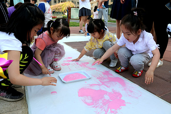 舞蹈結(jié)束后進(jìn)行游戲環(huán)節(jié),為小朋友打造了色彩體驗(yàn)地帶,準(zhǔn)備豐富的色彩顏料,大家可以在現(xiàn)場(chǎng)用手作畫,讓孩子們發(fā)揮想像,盡情的在上面畫出美麗的童真世界。