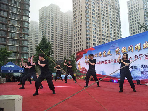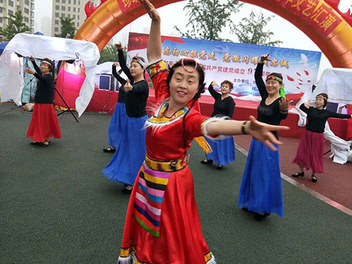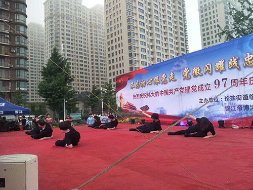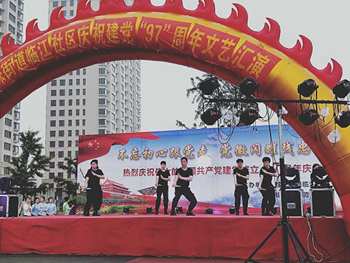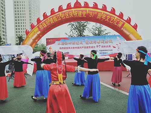 為慶祝偉大的中國共產(chǎn)黨建黨97周年,6月27日晚,在美麗的鴨綠江畔,丹東市臨江社區(qū)聯(lián)合轄區(qū)物業(yè)及居民隆重舉辦“建黨97周年慶典晚會”,金海物業(yè)應(yīng)邀參加了此次活動并在活動中獻上精彩的表演。當晚,雖然下起了瀝瀝細雨,但前來觀看的市民卻絡(luò)繹不絕,現(xiàn)場氣氛十分熱烈。演出開始前,濱江3號全民多彩社團文藝社的業(yè)主們?yōu)楝F(xiàn)場的所有觀眾表演了一段精彩的藏族舞蹈《心上的羅加》,讓人眼前一亮,贏得了臺下陣陣掌聲。隨之演出拉開大幕,在精彩紛呈的表演中,濱江3號管理部的管家和保安團隊也登臺一展風姿,表演了舞蹈《光榮的使命》,臺上的她們舞姿優(yōu)美,英姿颯爽,可謂是亦柔亦剛,給江城的父老相親和外地的游客展現(xiàn)了金海物業(yè)人的多樣風采,大家掌聲雷動,讓人印象深刻。