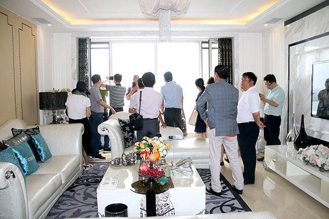 在金海濱江3號,劉總和蘇總分別向浙江政研會一行貴賓介紹了濱江3號項(xiàng)目的區(qū)位資源、規(guī)劃特色、景觀優(yōu)勢、建筑品質(zhì)、文化建設(shè)等,陪同貴賓們參觀了濱江3號百米長廊、園區(qū)、樣板間和電影院、游泳館、社區(qū)食堂、金海熙康體檢中心等配套設(shè)施。