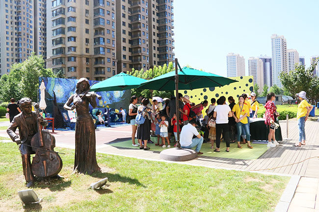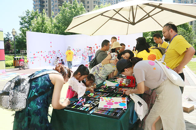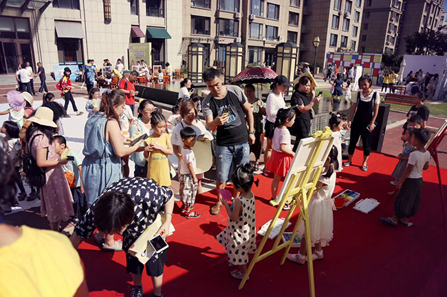 在活動(dòng)現(xiàn)場(chǎng),設(shè)置了多個(gè)藝術(shù)展示區(qū)和游戲活動(dòng),簡(jiǎn)直將濱江3號(hào)園區(qū)妝點(diǎn)成了一個(gè)美妙的藝術(shù)樂園,從紅花廣場(chǎng)到公共休息區(qū)等地方,大家都可以欣賞到楊梅紅私立學(xué)校的藝術(shù)展品。除了特意為熱愛繪畫的小朋友設(shè)置了藝術(shù)展示,楊梅紅國(guó)際私立美校還設(shè)計(jì)了很多非常有趣的親子游戲體驗(yàn),如:描爸媽、天然精油DIY、百米長(zhǎng)道、自由波點(diǎn)、徽章DIY等。讓孩子和家長(zhǎng)在一個(gè)共同藝術(shù)事件中產(chǎn)生真正的溝通,讓藝術(shù)教育不止停留在孩子自身,而是在家庭中衍生出更加親近的藝術(shù)氛圍。