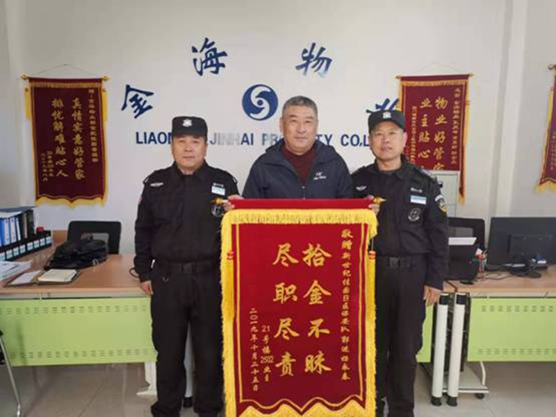 第二天,郭進(jìn)班長(zhǎng)吩咐各崗執(zhí)勤保安,如果看到業(yè)主,一定要提醒他去取回錢包。在大家的努力下,業(yè)主在第二天上午就取回了丟失的錢包。業(yè)主對(duì)金海保安員的感激之情溢于言表,給新世紀(jì)佳園管理部送來了錦旗,表達(dá)錢包失而復(fù)得的激動(dòng)心情和感激之意。