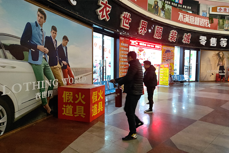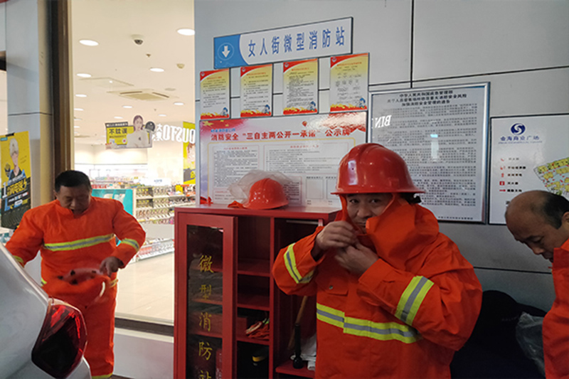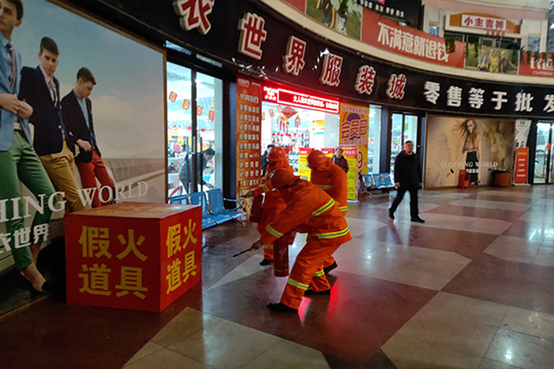 隨后,假設(shè)災(zāi)情并開展實(shí)戰(zhàn)演練:假設(shè)女人街衣世界入口處發(fā)生火災(zāi),經(jīng)員工發(fā)現(xiàn)。隨即現(xiàn)場(chǎng)進(jìn)行初步滅火、現(xiàn)場(chǎng)工作人員按下消防報(bào)警按鈕報(bào)警,消防控制室人員接到報(bào)警立即啟動(dòng)相關(guān)消防設(shè)備,通知微型消防站人員啟動(dòng)滅火和疏散預(yù)案,通訊聯(lián)絡(luò)組立即撥打119報(bào)警并通知領(lǐng)導(dǎo)發(fā)生火情,疏散引導(dǎo)組立即組織現(xiàn)場(chǎng)人員疏散,滅火行動(dòng)組接到報(bào)警三分鐘內(nèi)立刻趕赴現(xiàn)場(chǎng)滅火,搶險(xiǎn)救援組立即進(jìn)行重要物資撤離,安全防護(hù)組立即進(jìn)行火災(zāi)現(xiàn)場(chǎng)管制并做好接應(yīng)引導(dǎo)應(yīng)急救援支隊(duì)消防官兵到達(dá)火災(zāi)現(xiàn)場(chǎng)。經(jīng)過微型消防站各組人員的共同努力配合,演練取得了圓滿成功。