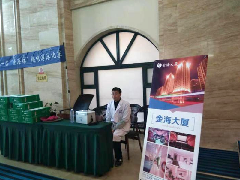 金海大廈總經(jīng)理遲慧慧女士到現(xiàn)場為選手加油鼓勵并發(fā)表講話。參賽者小到8歲的孩童,長到70歲的耄耋老人。比賽分為老年組、青年組50米蛙泳,男子組、女子組25米,自由泳和男女混合接力50米蛙泳三個項目。為了確保比賽安全順利的進行,大廈邀請了熙康體檢中心醫(yī)護人員,游泳教練兼救生員劉青云。劉教練在賽前講解安全注意事項以及比賽規(guī)則。