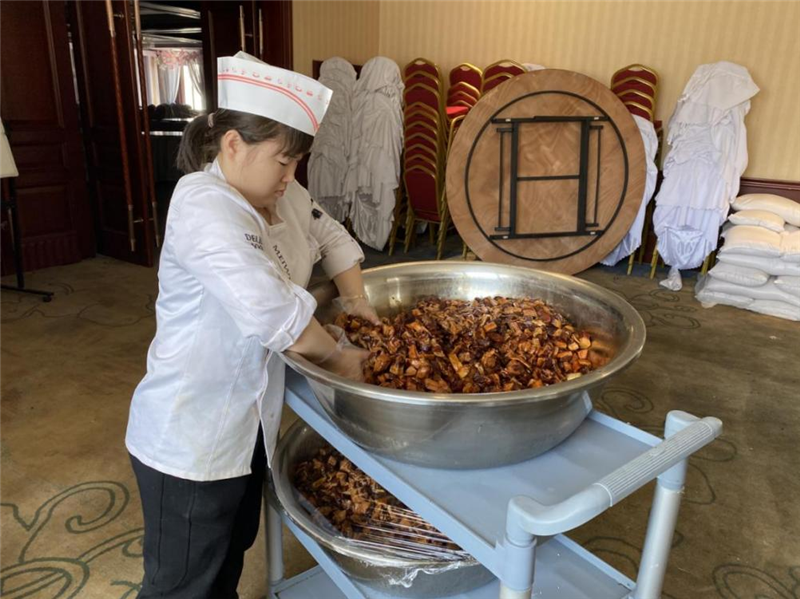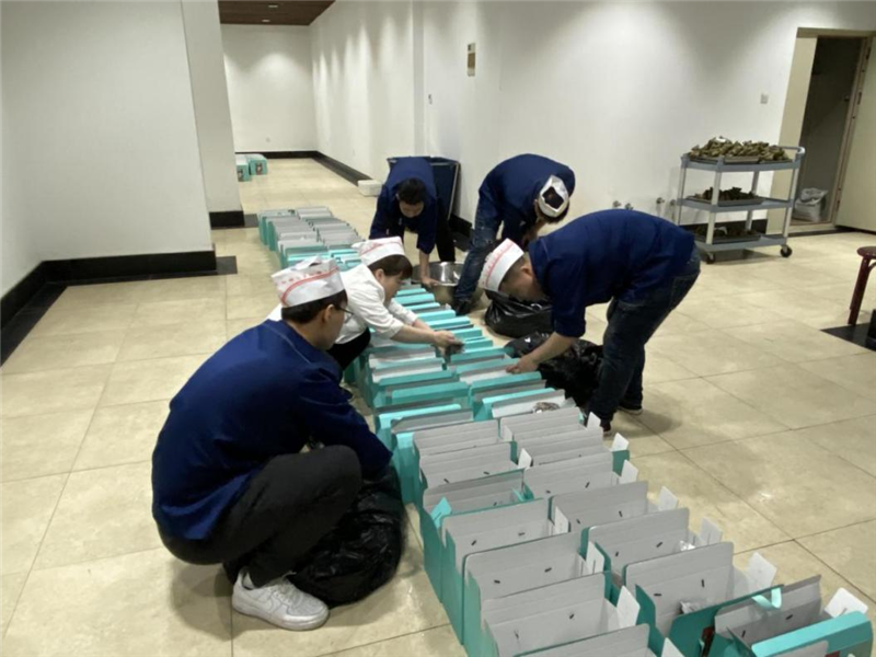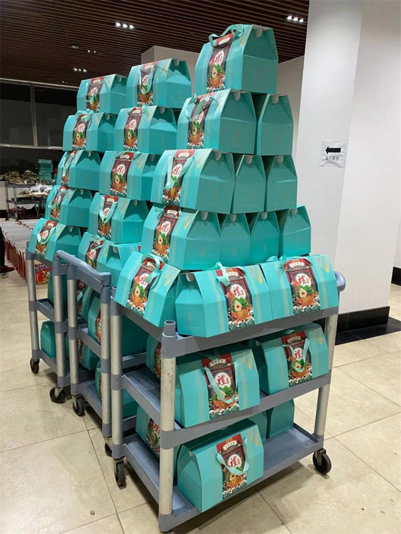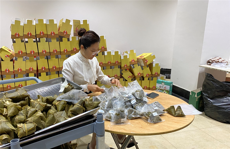 和其他酒店相比,金海大廈的傳統(tǒng)手工粽子備受青睞,購買粽子的顧客,基本都是專門來買手工粽子的,盡管傳統(tǒng)手工粽子餡料種類沒有市面上豐富,但是口感更勝一籌。金海大廈出品的純手工粽子供不應(yīng)求,銷售量已達1600+,廚房已經(jīng)忙得不可開交。金海大廈總經(jīng)理遲慧慧親力親為,也加入到粽子裝箱的隊伍當中,勤勞的員工們都盡力為大廈的業(yè)績獻出自己的一份力量。