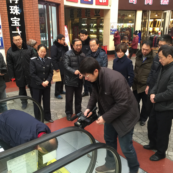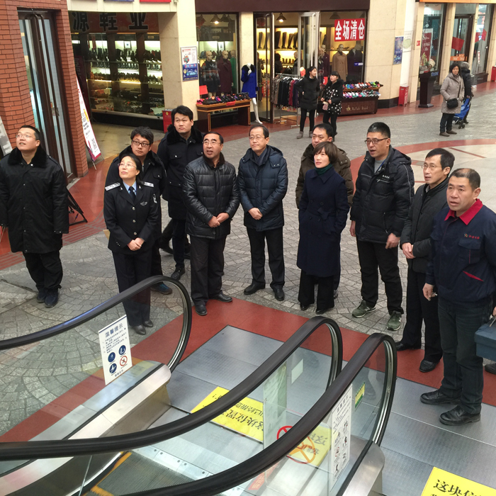 2016年2月2日上午9點(diǎn)丹東市質(zhì)監(jiān)局盧局長、元寶區(qū)質(zhì)監(jiān)局王局長、藤局長等8人在丹東電視臺(tái)記者的陪同下,對(duì)全市特種設(shè)備優(yōu)秀管理單位進(jìn)行工作指導(dǎo)。金海商業(yè)公司???、于曉東、王樂彬、劉偉、電梯維保人員,陪同質(zhì)監(jiān)局領(lǐng)導(dǎo)進(jìn)行工作指導(dǎo),盧局長對(duì)金海商業(yè)公司長期注重企業(yè)生產(chǎn)安全,嚴(yán)格對(duì)設(shè)備管理、人員管理、制度管理工作給予高度評(píng)價(jià)。