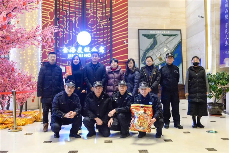 “今天是除夕,應(yīng)該是和家人團(tuán)圓的日子,但你們還在堅(jiān)守崗位,辛苦了,給你們拜個(gè)早年,祝大家新春愉快,身體健康,萬(wàn)事如意!”總經(jīng)理賈本鑫一行與值班人員一一握手,詢(xún)問(wèn)他們的工作、生活情況,叮囑他們要特別注意安全事項(xiàng),并向他們致以節(jié)日的問(wèn)候,送上新春大禮包,轉(zhuǎn)達(dá)董事長(zhǎng)高翔的新春?jiǎn)柡?,感謝他們?yōu)榻鸷<瘓F(tuán)所做出的奉獻(xiàn)。同時(shí),希望大家一如既往,以高度的責(zé)任心和飽滿(mǎn)的工作熱情,全力以赴做好節(jié)日期間安全生產(chǎn)、疫情防控等工作,做好禁燃煙花爆竹的宣傳工作和服務(wù)民生各項(xiàng)工作,確保轄區(qū)內(nèi)和諧穩(wěn)定,全力維護(hù)企業(yè)的和諧穩(wěn)定發(fā)展。并囑咐大家在做好工作的同時(shí),共同度過(guò)一個(gè)歡樂(lè)祥和的春節(jié)。一聲聲問(wèn)候,一句句祝福,寄托著公司領(lǐng)導(dǎo)對(duì)一線(xiàn)職工的關(guān)愛(ài)。
